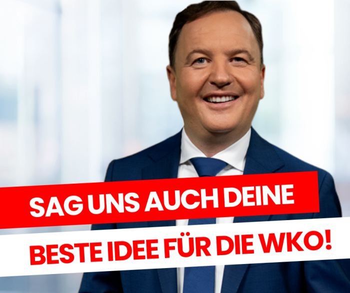 Daher möchte ich dich persönlich einladen mir deine beste Idee für eine neue, moderne Wirtschaftskammer zu schicken.